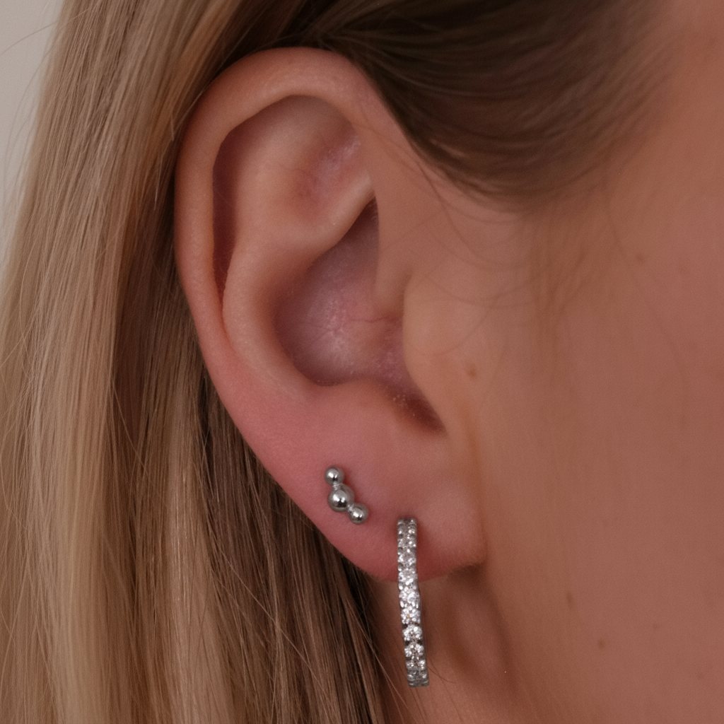 A perfect combination of statement and sparkle with our Essential CZ Half Hoops. Featuring our own Austens Cubic Zirconia stones. Comfortable, nickel-free, and suitable for daily wear.