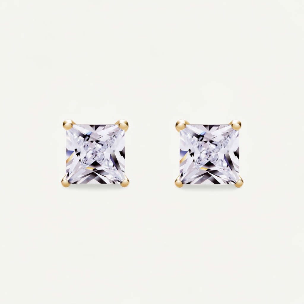 Elevate your everyday style with our Princess Solitaire Studs, where timeless sparkle meets a contemporary edge. Perfect for daily wear or layering with hoops to create a standout look. Crafted nickel-free for comfort you can trust all day long.