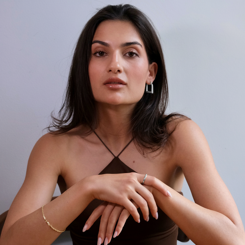 Bold yet refined, these modern square hoops are designed to stand out. Their clean lines and contemporary shape make them the perfect finishing touch — whether it’s a casual Sunday brunch or a night out. Hypoallergenic, comfortable, and made to elevate your everyday glam.