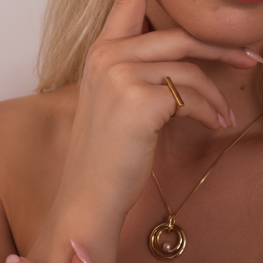 Sleek and understated, the Horizontal Bar Ring is a timeless piece designed for everyday elegance. Made without nickel, it offers a comfortable fit that suits all-day wear. Its versatile design effortlessly complements any outfit, making it a wardrobe staple.
