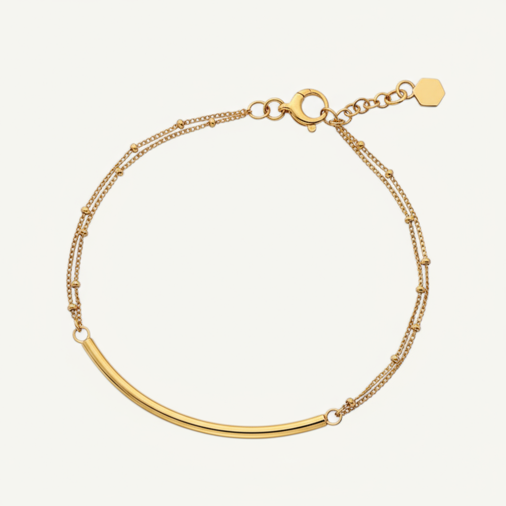 The Double Strand Bar Bracelet brings understated elegance to your jewellery collection, effortlessly bridging casual and formal styling. Crafted from nickel-free materials, it's gentle enough for sensitive skin while remaining durable for everyday enjoyment. Experience jewellery that prioritises both beauty and comfort without asking you to choose between them.