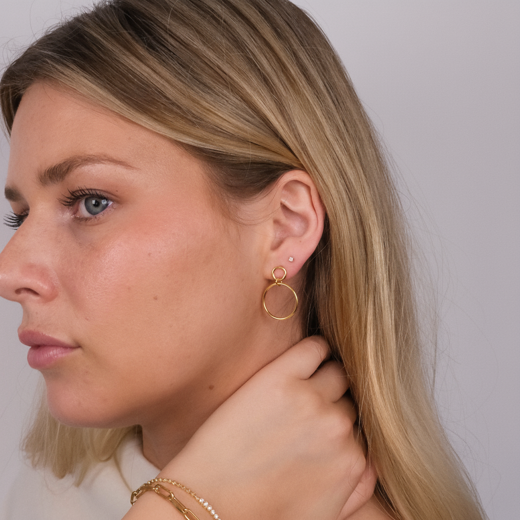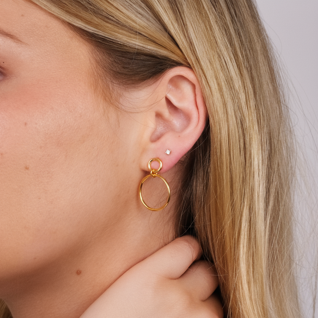 Our Statement Circle Drop Earrings combine contemporary style with striking presence. Designed to enhance any outfit, they transition effortlessly from casual sophistication to night-time allure. Crafted to be hypoallergenic for all-day comfort.