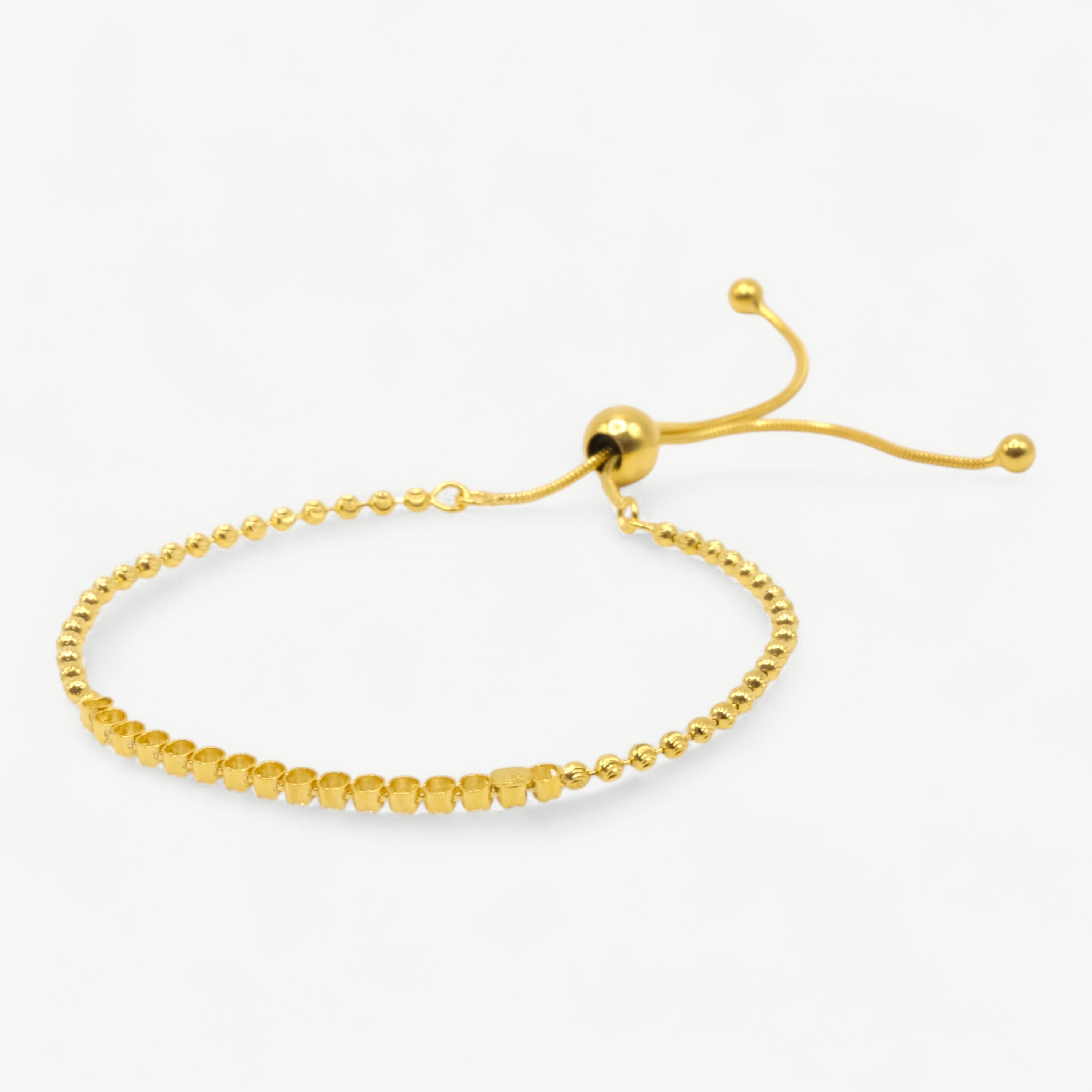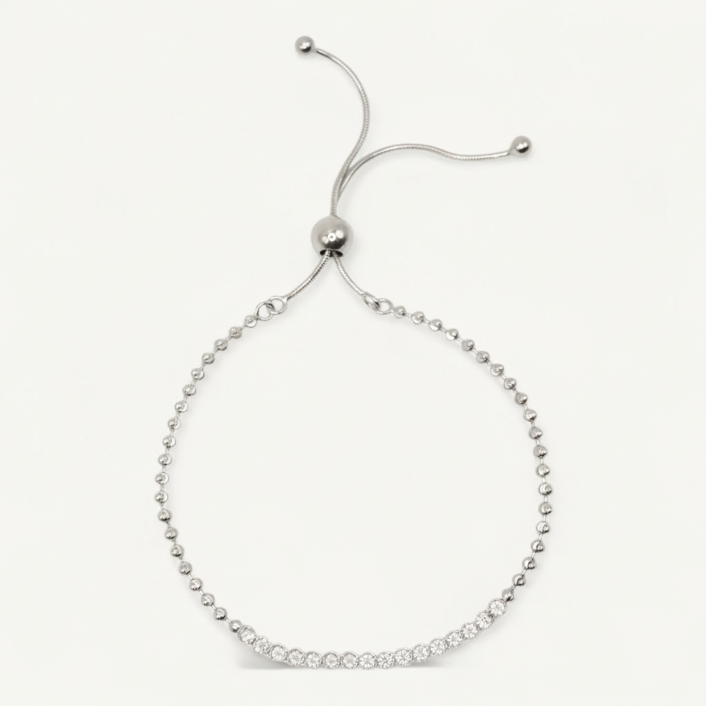 Add a new layer of fine jewellery to your arm with this beautiful CZ Bead Bracelet. Featuring an adjustable toggle making it perfect for any wrist size. Comfortable, nickel-free, and suitable for daily wear.