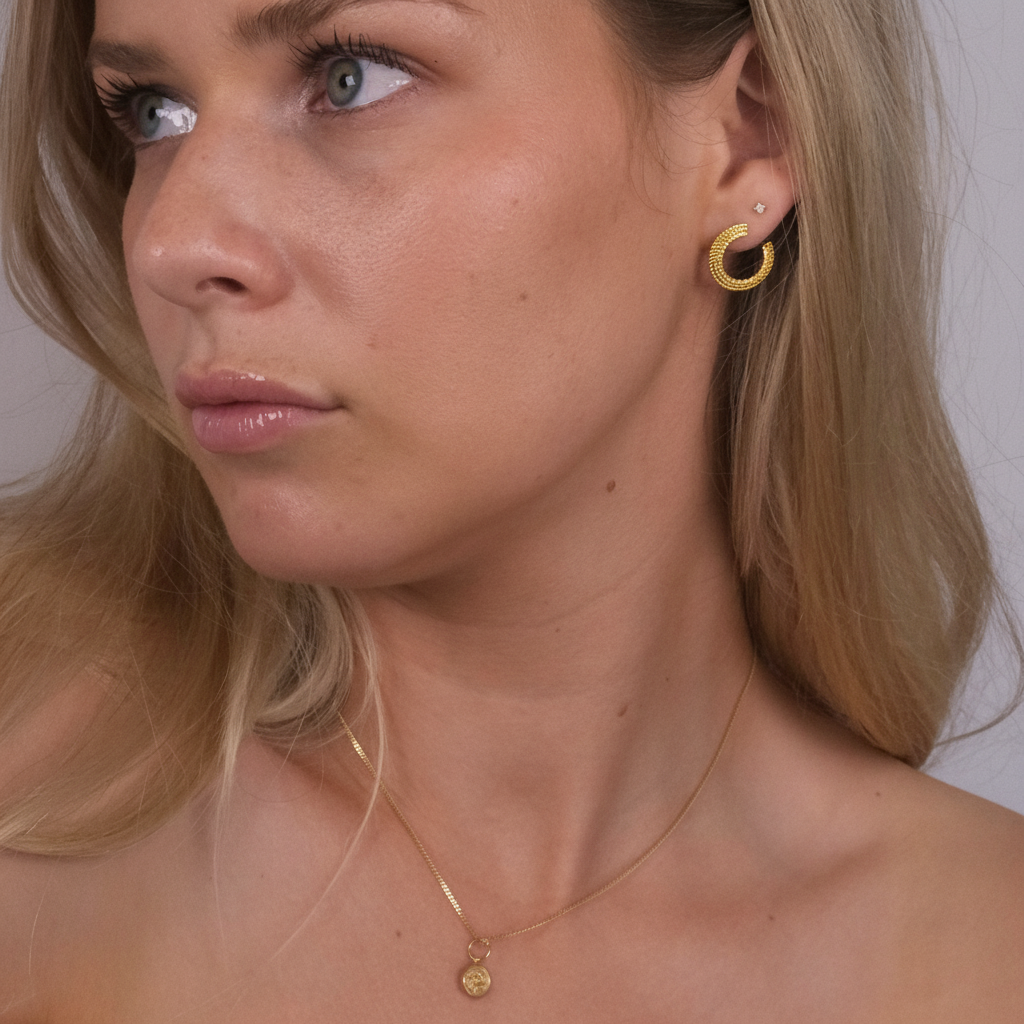 We use premium 925 sterling silver with a thick and durable layer of yellow gold for long-lasting wear. Our gold-plated silver jewellery allows you to find your style without the high costs of solid gold.