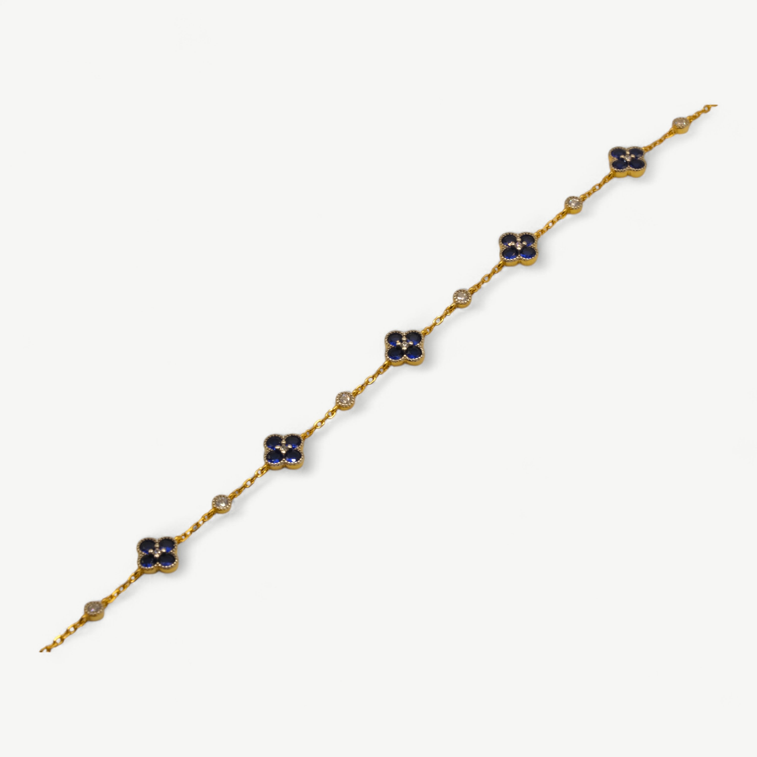 This classic bracelet showcases delicate blue clovers combined with sparkling specially selected Austens cubic zirconia stones. It delivers the ideal mix of colour and brilliance to enhance your everyday elegance. Nickel-free and designed for all-day comfort, it’s perfect for daily wear.