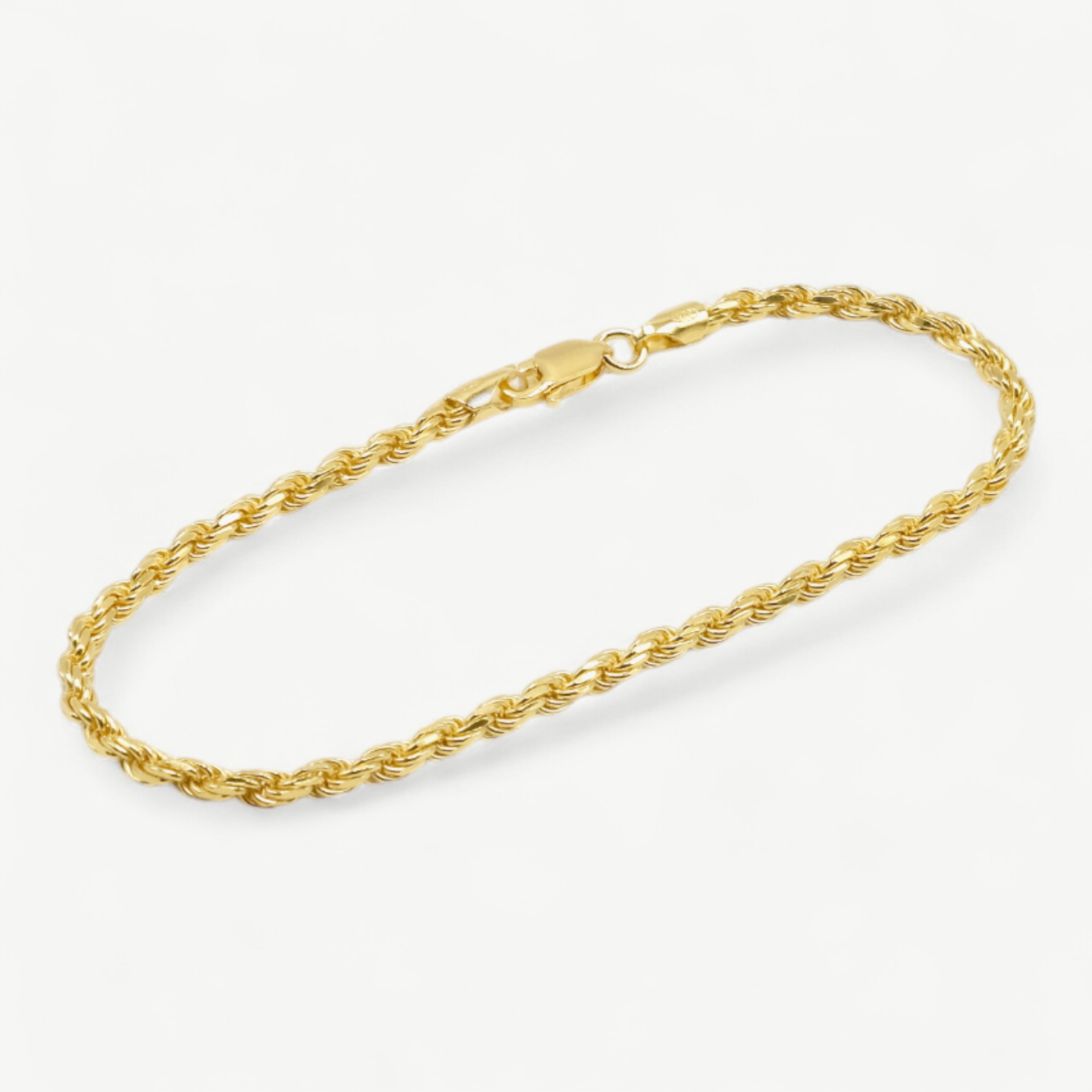 The gold rope chain bracelet combines sleek elegance with bold appeal, making it an essential addition to your jewellery collection. Its textured surface skilfully reflects light, providing a refined look when worn alone or a contemporary style when layered. Designed to be nickel-free, durable, and suitable for daily wear.