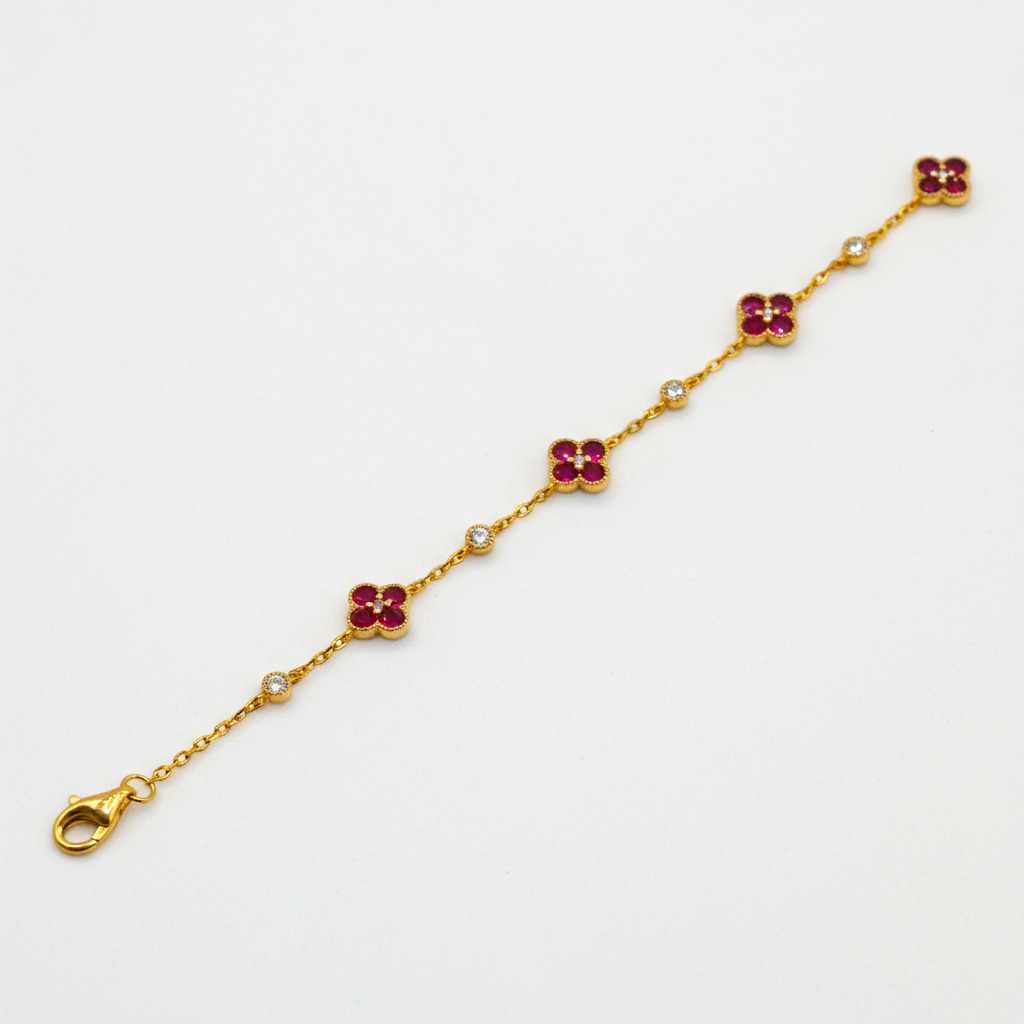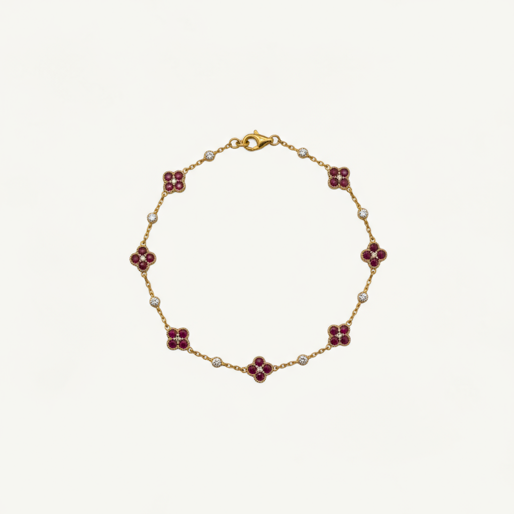 Add a vibrant touch to your look with this bracelet featuring charming red clovers and dazzling Austens specially selected cubic zirconia stones. Sophisticated and chic, it’s nickel-free and crafted for everyday comfort and style.