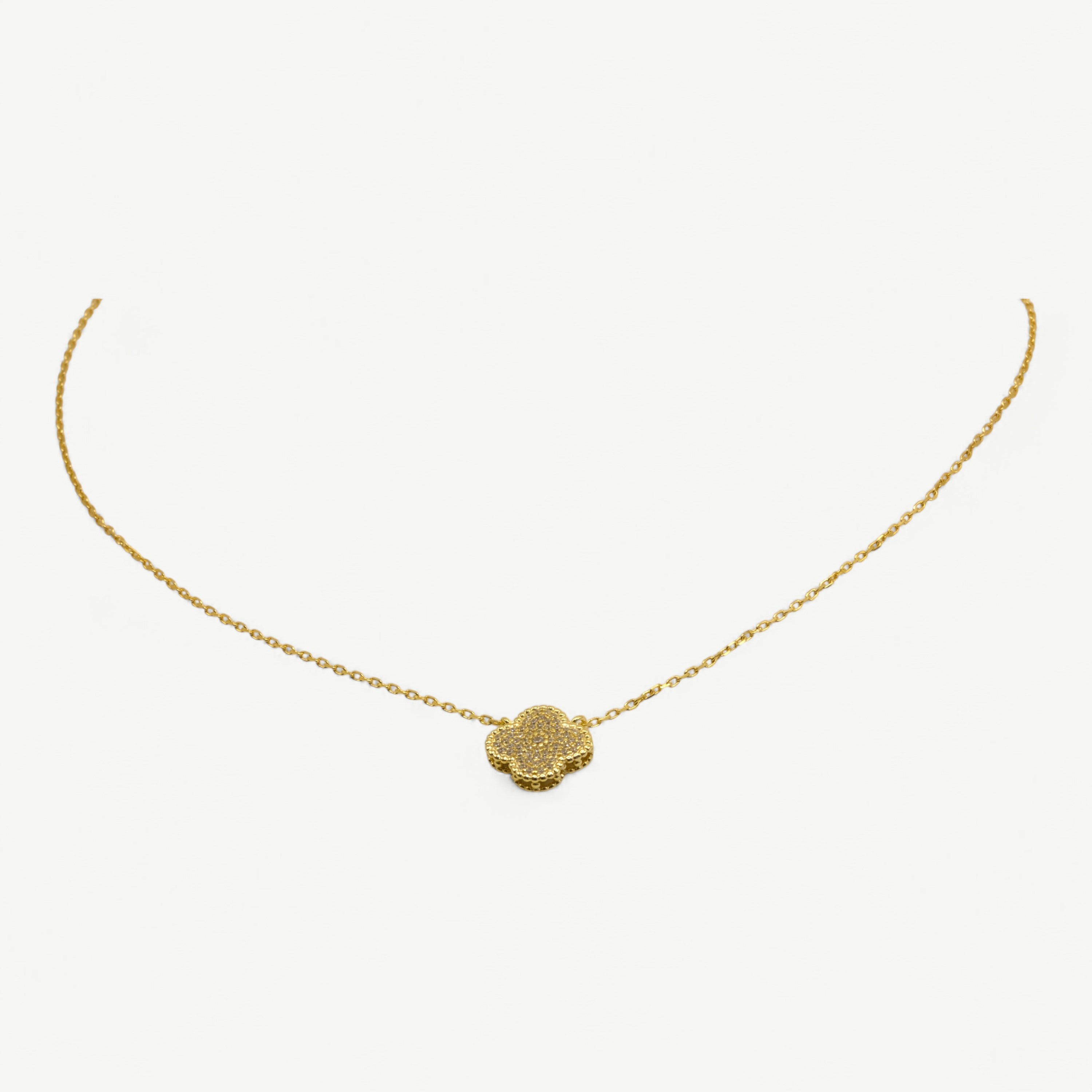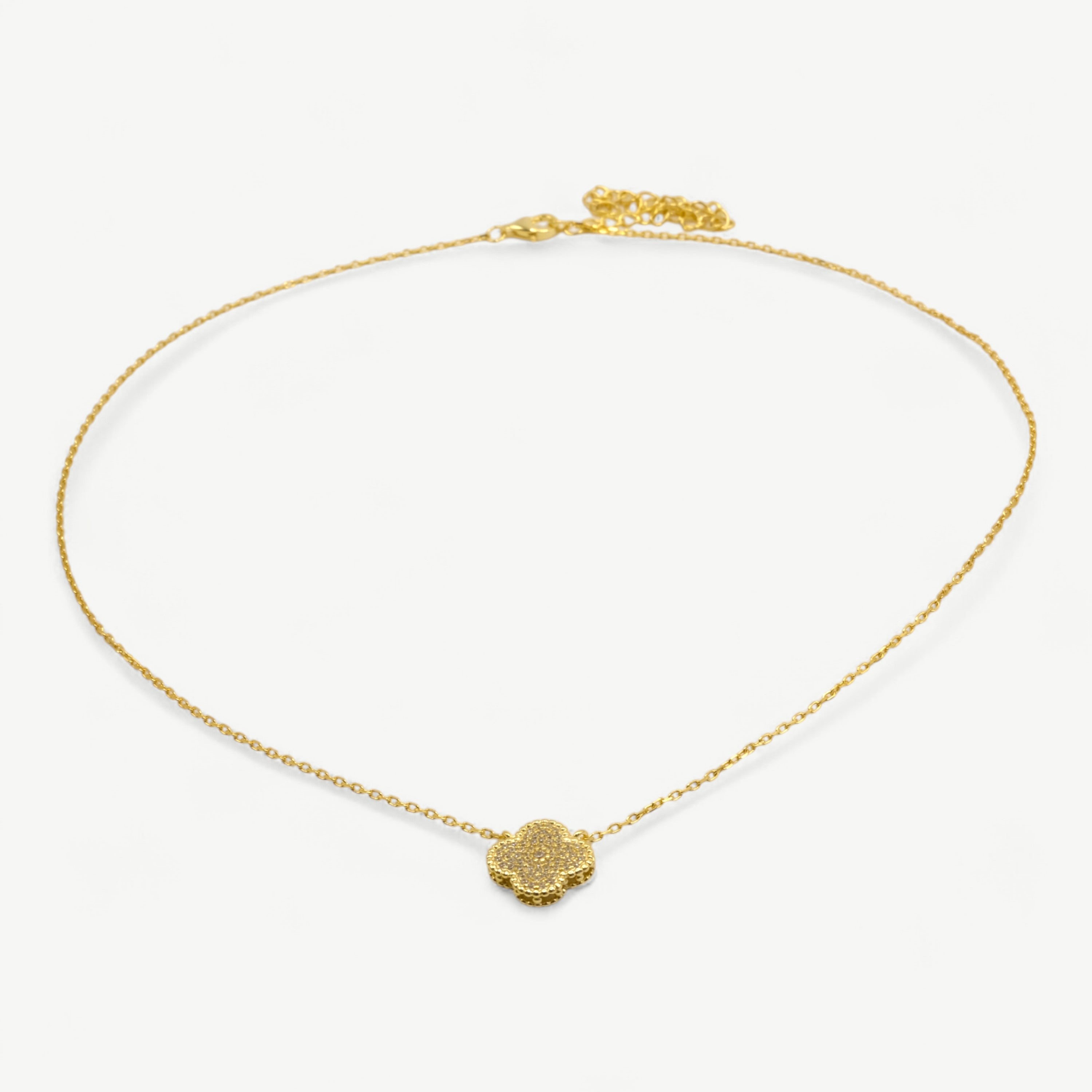 Delicately crafted with a detailed clover covered in Austens specially selected Cubic Zirconia stones. The fine chain necklace adds a touch of elegance. Comfortable, hypoallergenic, and suitable for daily wear.
